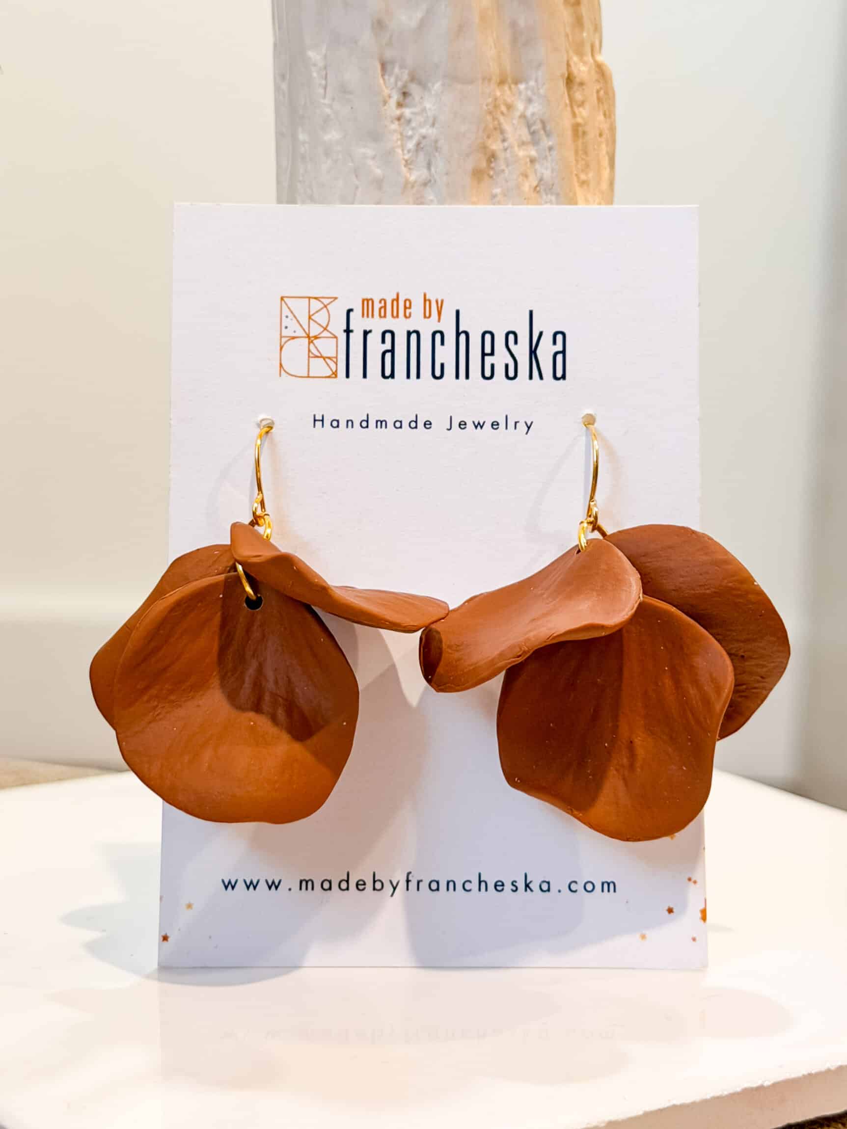 Rosa is a three petal dangle with a stud. Made out of polymer clay, molded by hand. Comes with a lobster hook top.