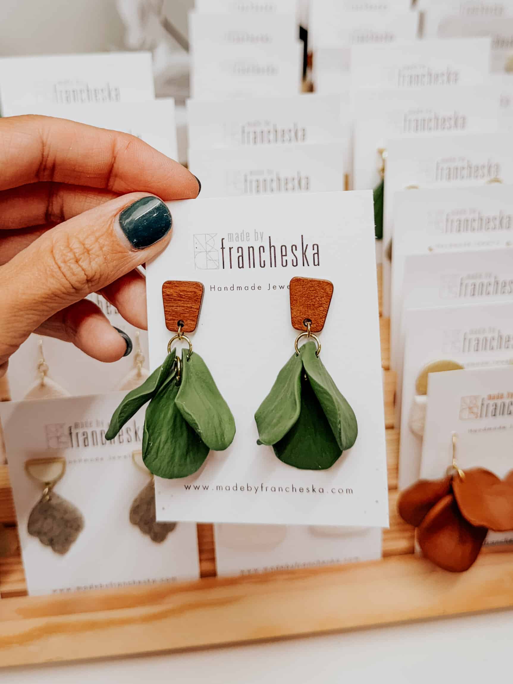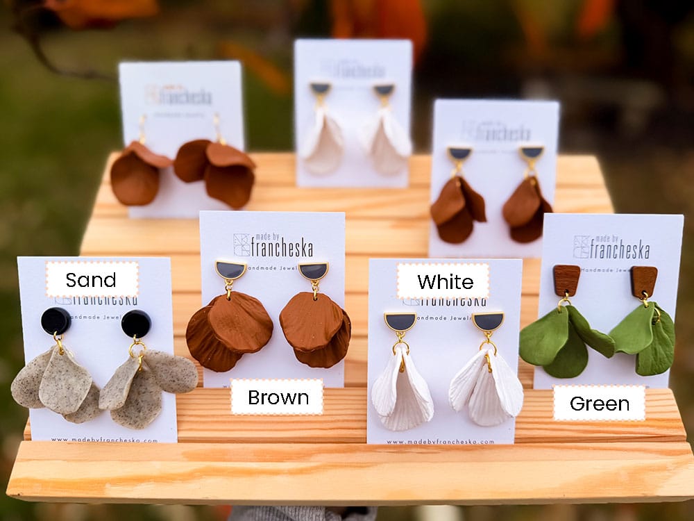 Rosa is a three petal dangle with a stud. Made out of polymer clay, molded by hand. Choose your style!